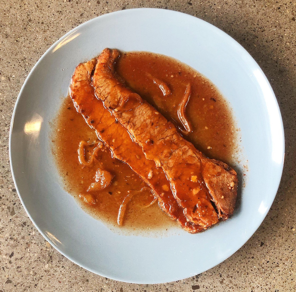 Prime USDA black angus beef, hand carved single brisket with caramelized onion gravy.